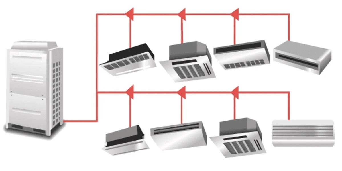 Birden fazla iç ünitenin, tek bir bakır boru hattıyla bir dış üniteye bağlanmasına olanak tanıyan VRF klima sistemi gelişmiş ısı geri kazanımı, mekan içi havanın ısıtması, soğutması ya da sadece temizlenmesi için kullanılabilir.